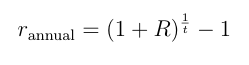 Annualizing refers to finding an equivalent annual rate of return which results in the same gross rate of return currently experienced. For instance, if your portfolio grows 60% over four years, this is the equivalent of experiencing 12.5% growth per year.